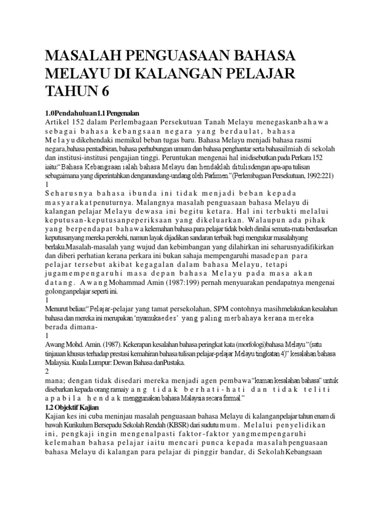 Masalah Penguasaan Bahasa Melayu Di Kalangan Pelajar Tahun 6 Pdf